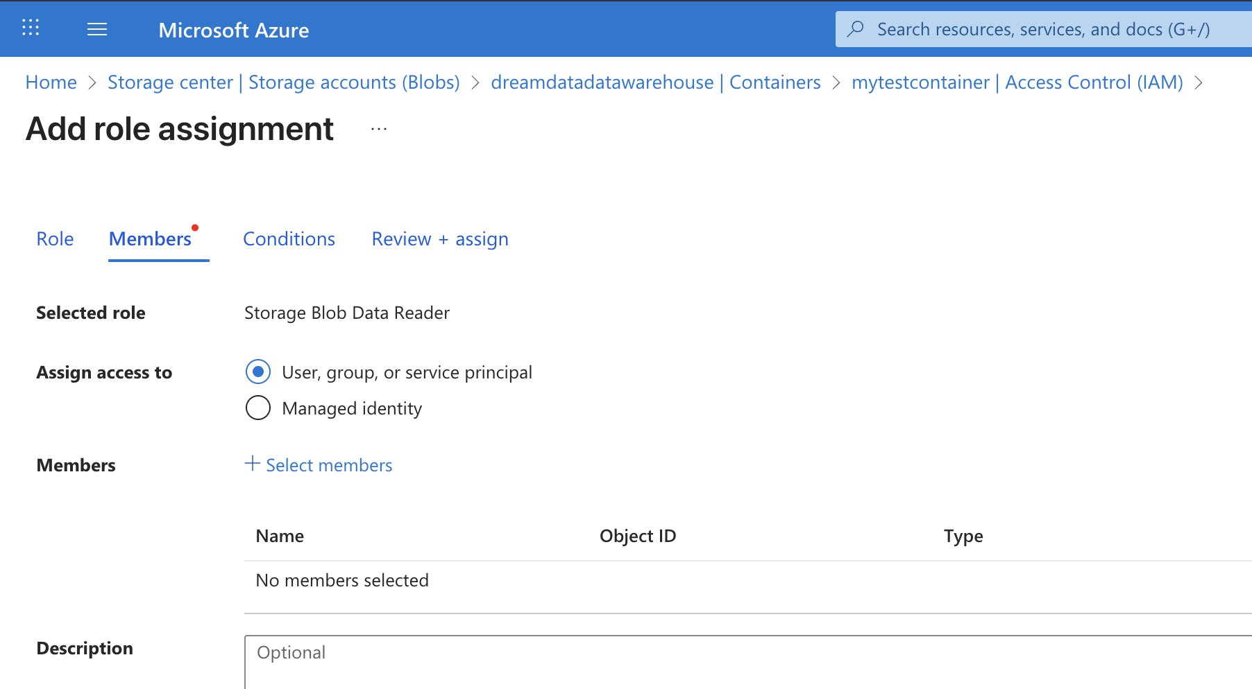 - You should now see the role assigned to the Dreamdata Data Warehouse App (Service Principal):