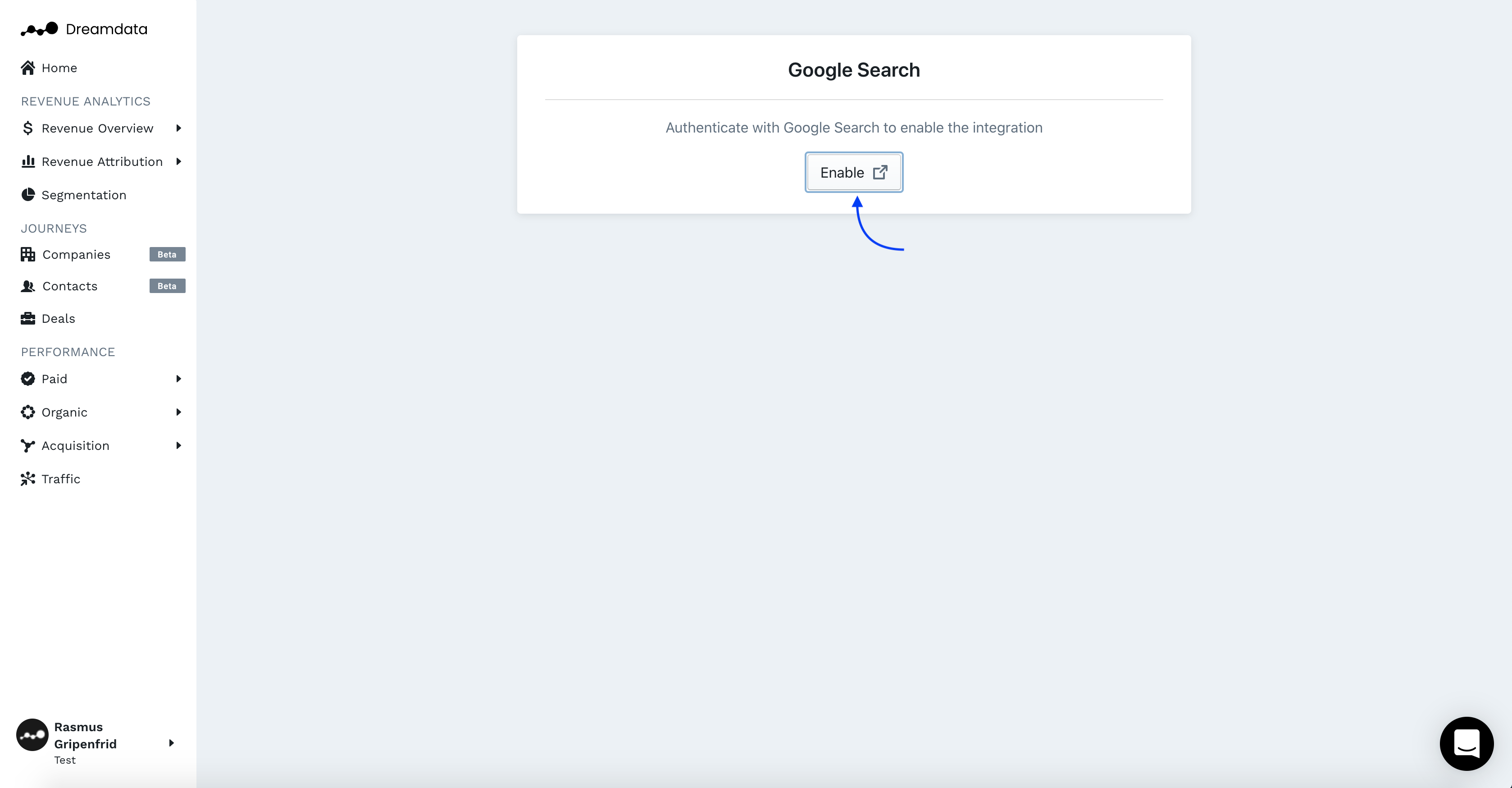 In order to enable the Google Search dashboard and populate the Organic Search dashboard with data, you need to enable the Google Search integration.
